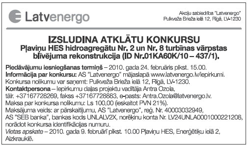 Paziņojums par atklātu konkursu