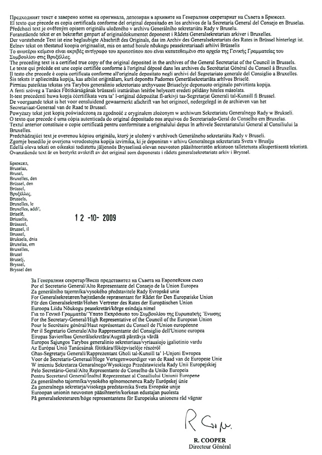 Šis protokols ir sastādīts divos eksemplāros angļu, bulgāru, čehu, dāņu, franču, grieķu, holandiešu, igauņu, itāļu, latviešu, lietuviešu, maltiešu, poļu, portugāļu, rumāņu, slovāku, slovēņu, somu, spāņu, ungāru, vācu, zviedru valodā un Dienvidāfrikas Republikas oficiālajās valodās, izņemot angļu valodu, proti, Sepedi, Sesotho, Setswana, siSwati, Tshivenda, Xitsonga, Afrikaans, isiNdebele, isiXhosa unisiZulu valodā, un visi šie teksti ir vienlīdz autentiski.