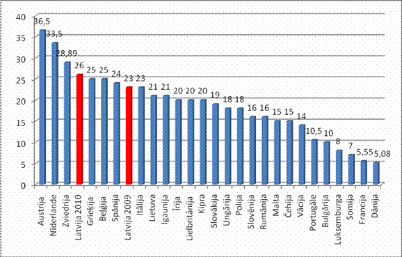2009.gadā publicētajā Pasaules Bankas ziņojumā Doing Business 2010 3 Latvija 183 valsts vidū ir ierindota 27.vietā, par trīs vietām augstāk, nekā iepriekšējā gadā. Lietuva ir ierindota 26.vietā, savukārt Igaunija ieņem 24.vietu.