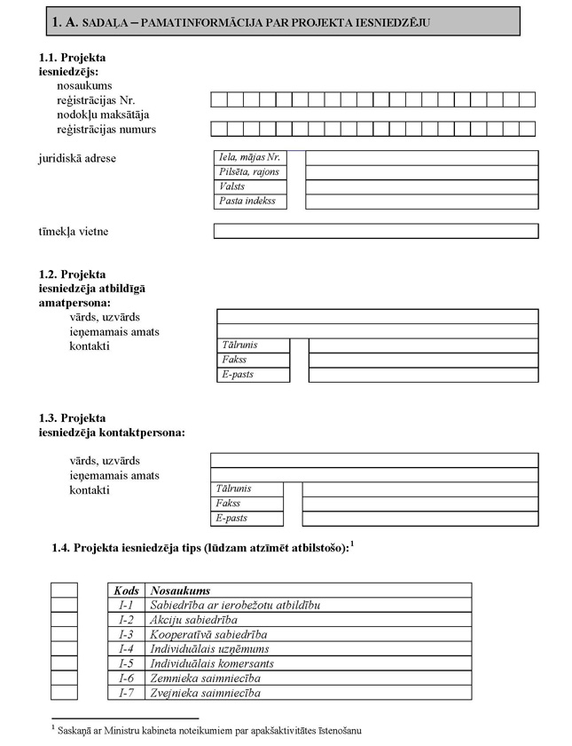 16.2. projekta iesniegumu veido aizpildīta projekta iesnieguma veidlapa (1.pielikums) un šādi pielikumi: