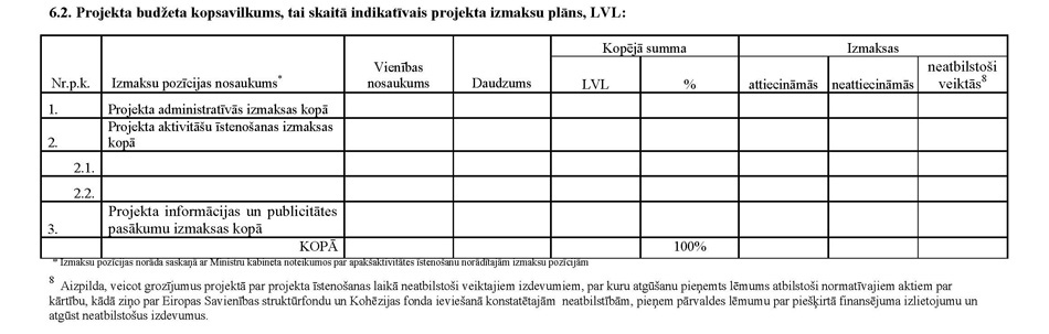 8. Projekta minimālā attiecināmo izmaksu kopsumma nav ierobežota, maksimālā attiecināmo izmaksu kopsumma ir 2 550 000 latu.