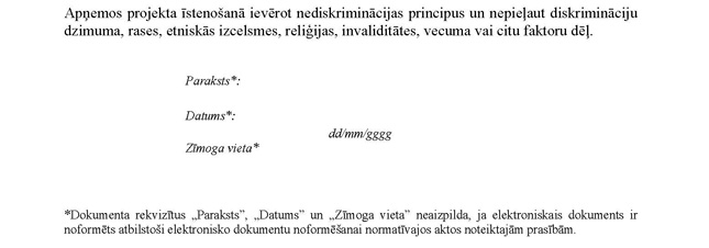 16.3. projekta iesniegumu paraksta projekta iesniedzēja institūcijas vadītājs vai tā pilnvarota persona. Ja projekta iesniegumu paraksta pilnvarota persona, tam pievieno attiecīgo pilnvarojumu.