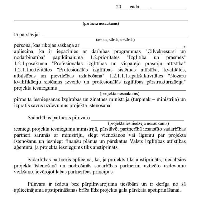 16.2.2. sadarbības partnera apliecinājums par dalību projekta īstenošanā (3.pielikums);