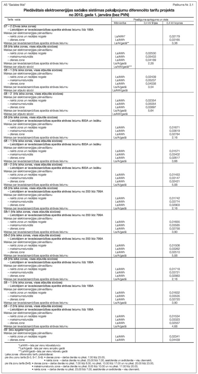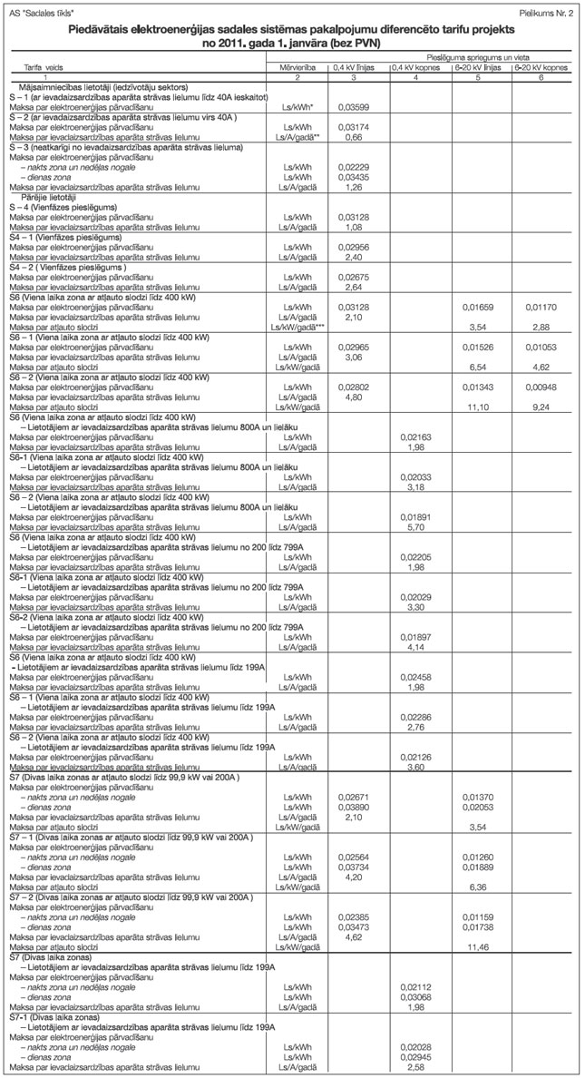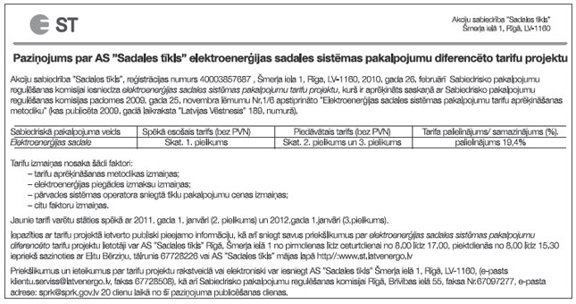 Piedāvātais tarifs varētu stāties spēkā ar 2010.gada 1.maiju.