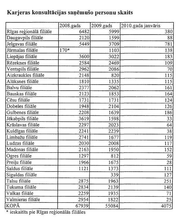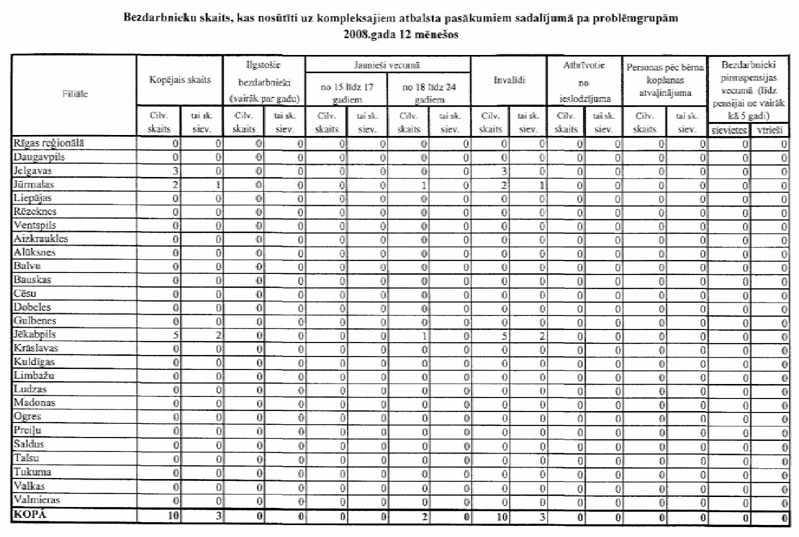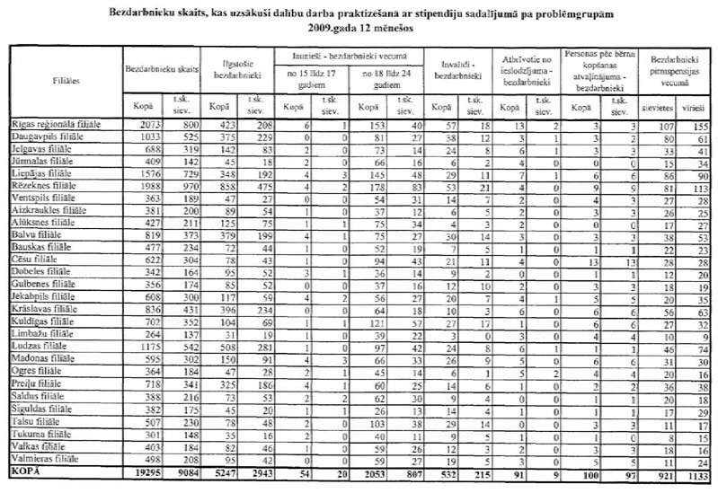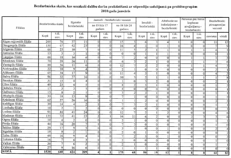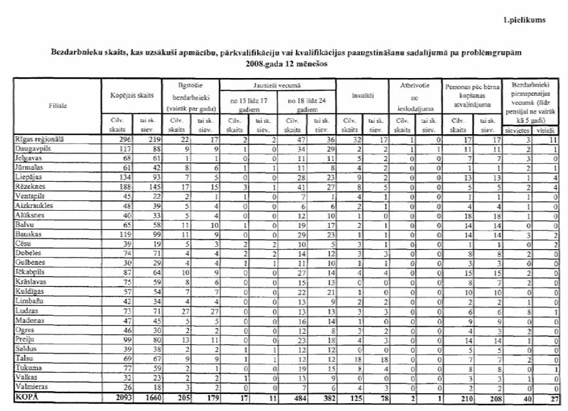 Pielikumā: 1. Aktīvajos nodarbinātības un preventīvajos bezdarba samazināšanas pasākumos iesaistīto personu skaits sadalījumā pa mērķa grupām 2008., 2009. un atsevišķiem pasākumiem arī 2010.gadā;