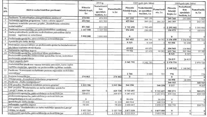 aktīvajiem nodarbinātības pasākumiem 2008., 2009. un 2010.