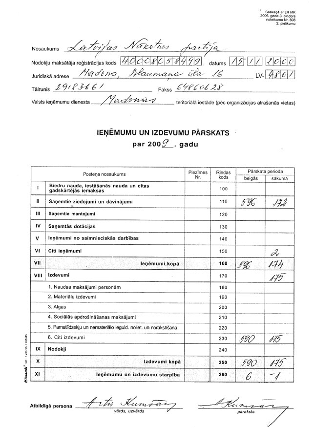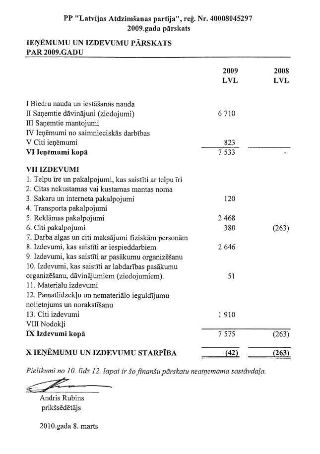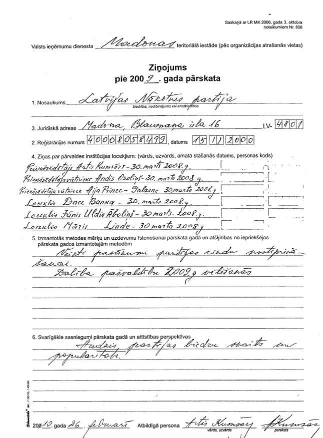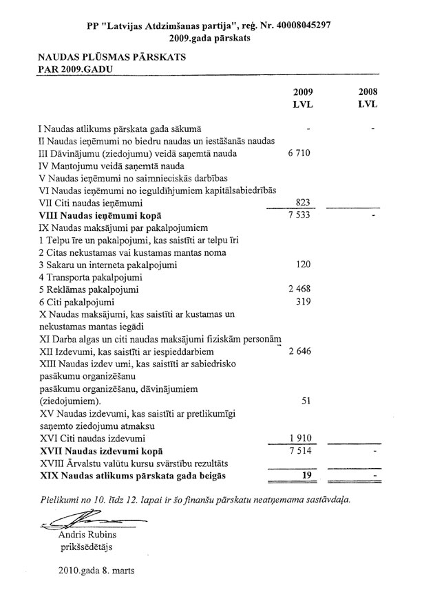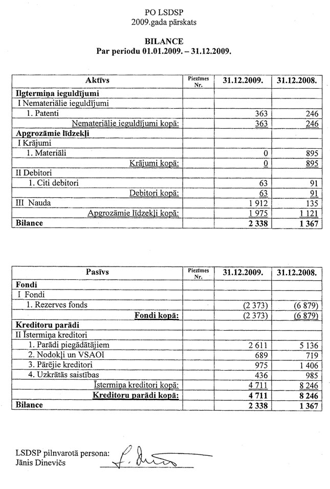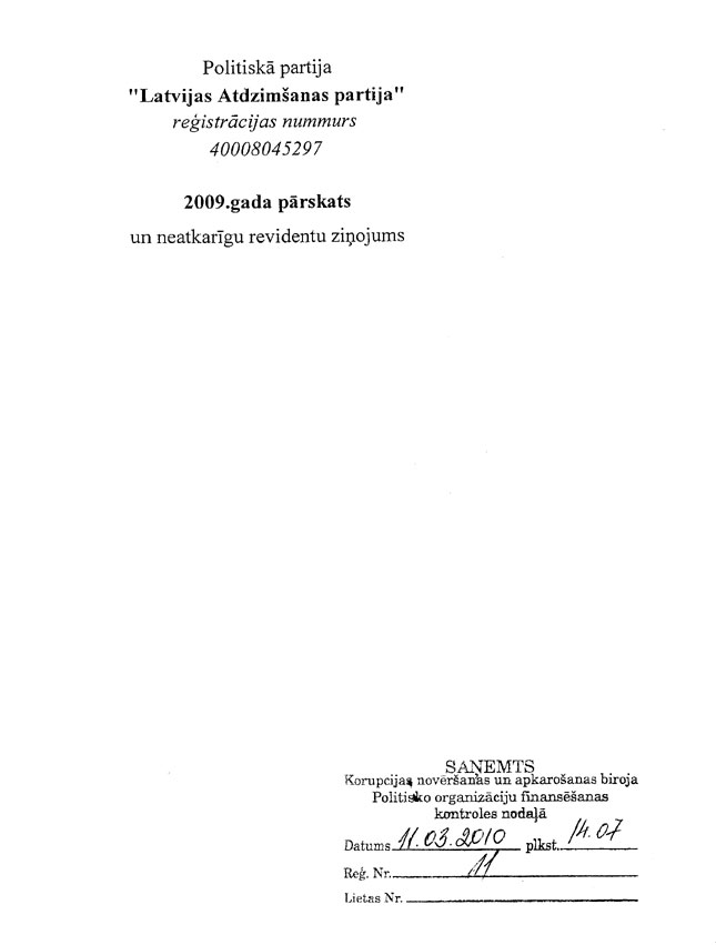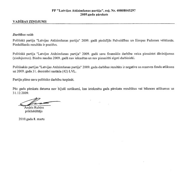 Darbības pārskati. Publicēts oficiālajā laikrakstā "Latvijas Vēstnesis", 24.03.2010., Nr. 47 https://www.vestnesis.lv/ta/id/207013