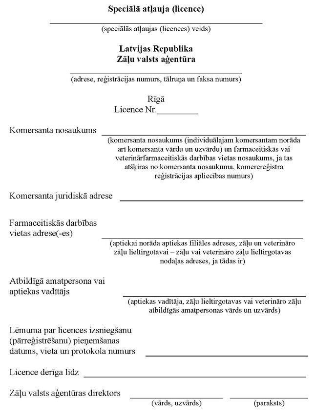 1.1.3. speciālā atļauja (licence) zāļu vai veterināro zāļu lieltirgotavas atvēršanai (darbībai);