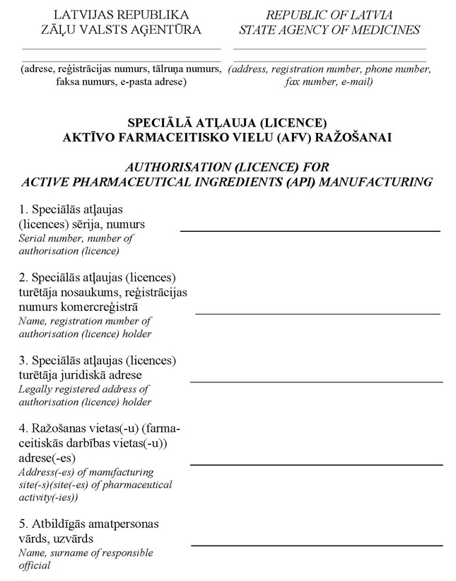 5.4. minēto licenci zāļu ražošanai vai importēšanai vai licenci aktīvo farmaceitisko vielu vai kontrolējamo vielu ražošanai vai spirta fasēšanai izsniedz arī šādos gadījumos: