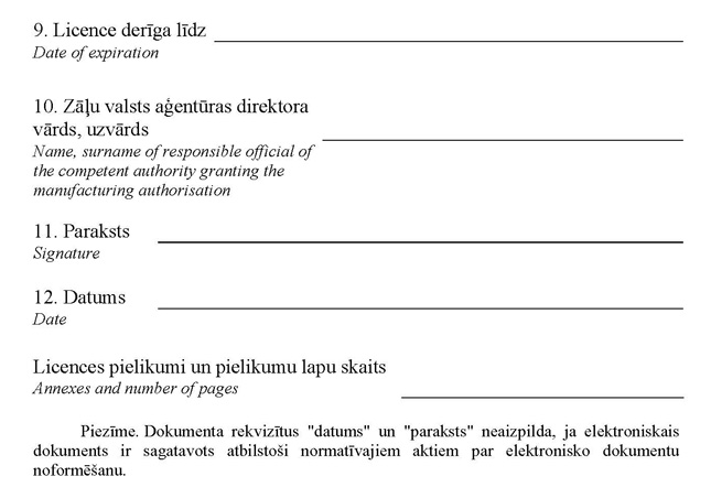 Piezīmes. Dokumenta rekvizītus "Datums" un "Paraksts" neaizpilda, ja elektroniskais dokuments ir sagatavots atbilstoši normatīvajiem aktiem par elektronisko dokumentu noformēšanu.