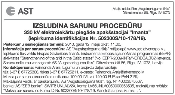 Projekti iesniedzami Ekonomikas ministrijā Brīvības ielā 55, Rīgā, LV-1519, personīgi vai pa pastu, ar nosacījumu, ka gan personīgi iesniegtajiem, gan pa pastu sūtītajiem projektiem ir jābūt saņemtiem EM ne vēlāk kā līdz 2010.gada 26.aprīlim plkst.14.