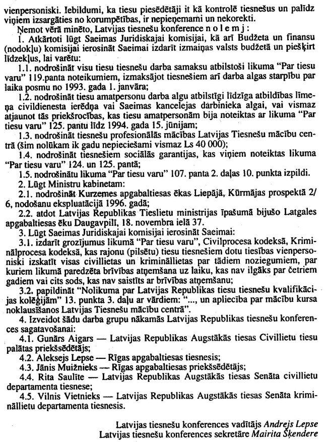 Par tiesu varas nostiprināšanu. Publicēts oficiālajā laikrakstā "Latvijas Vēstnesis", 25.04.1996., Nr. 71 https://www.vestnesis.lv/ta/id/207884-par-tiesu-varas-nostiprinasanu