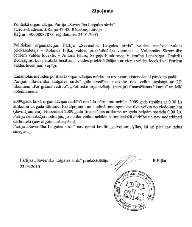 saīsinātais 2009.gada pārskats un zvērinātu revidentu