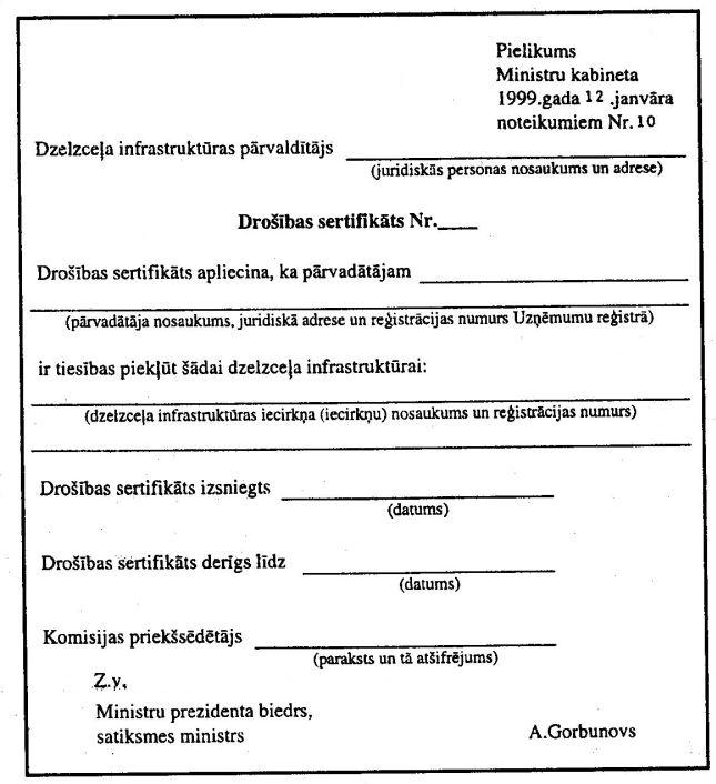 20. Drošības sertifikātu (pielikums) paraksta komisijas priekšsēdētājs vai viņa pilnvarota persona. Paraksts tiek apliecināts ar dzelzceļa infrastruktūras pārvaldītāja zīmogu.