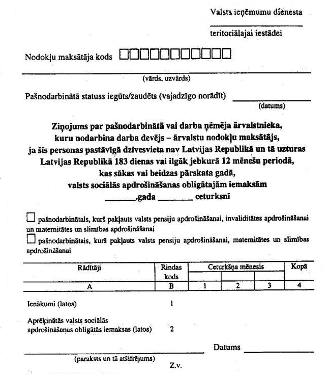 Nodokļu maksātāja kods [ ] [ ] [ ] [ ] [ ] [ ] [ ] [ ] [ ] [ ]