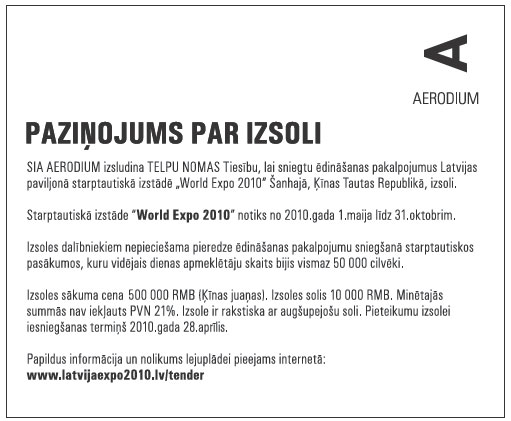 Piedāvājumi konkursam iesniedzami aizlīmētās aploksnēs līdz 2010.gada 29.aprīlim plkst. 10.50 Turgeņeva ielā 21, Rīgā, SIA ‘’LDZ ritošā sastāva serviss’’ administrācijas ēkā 2.stāvā 205.istabā.