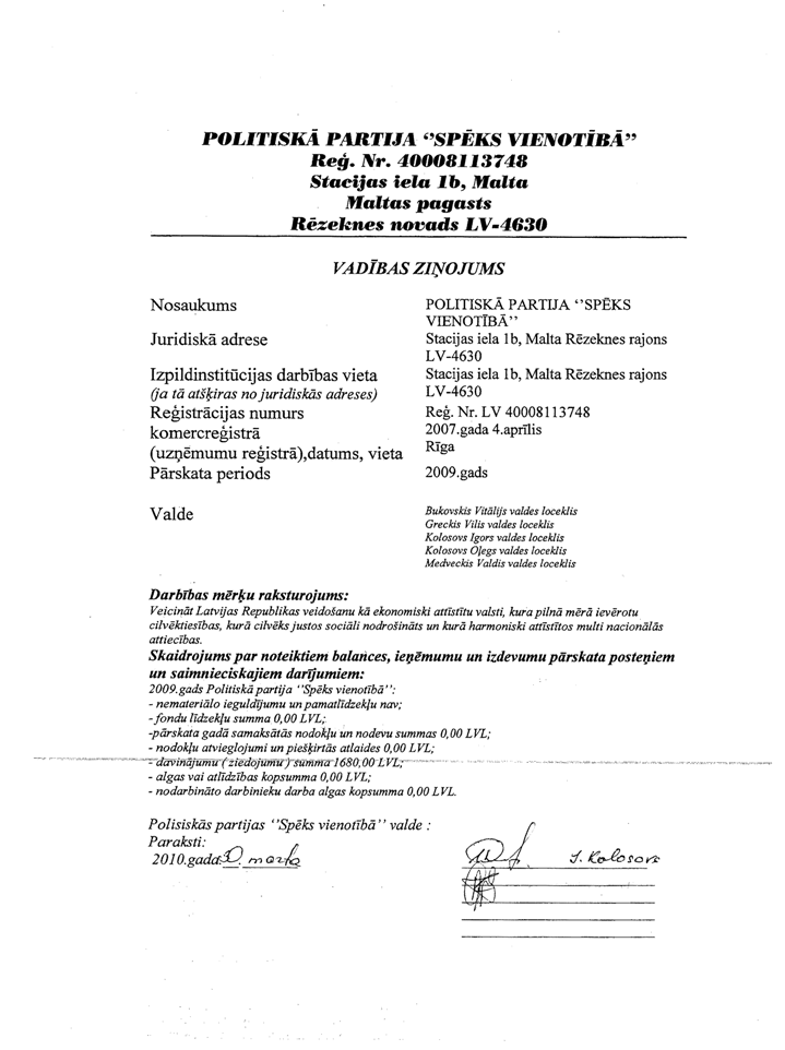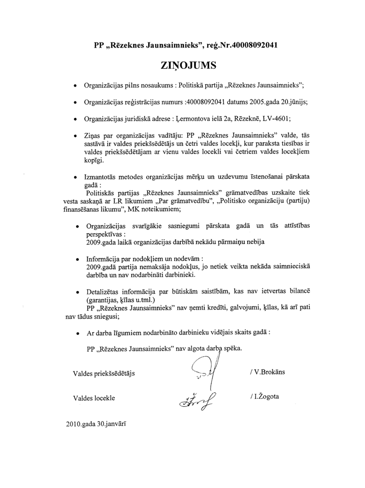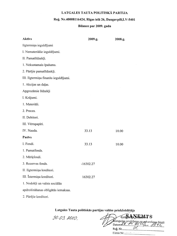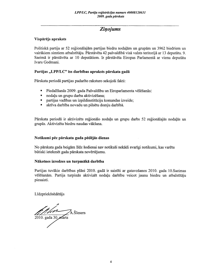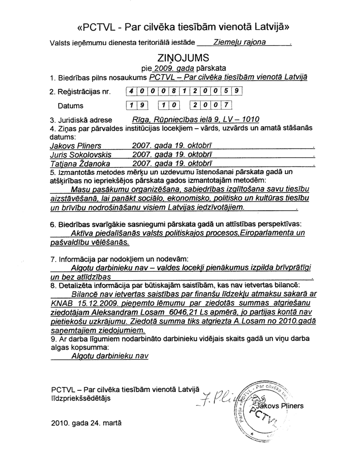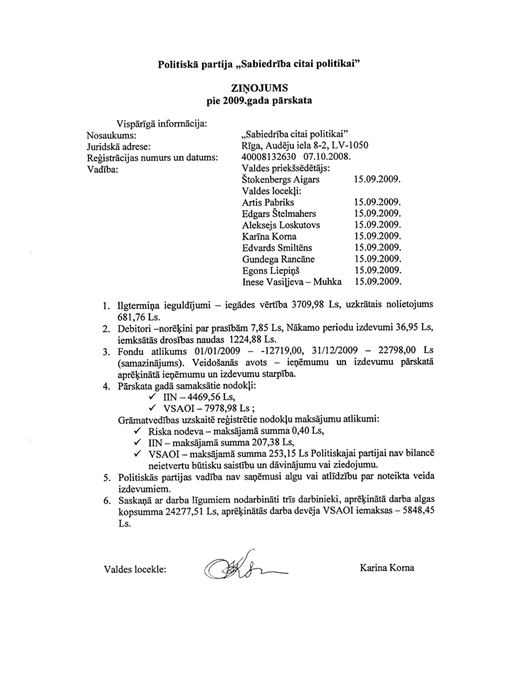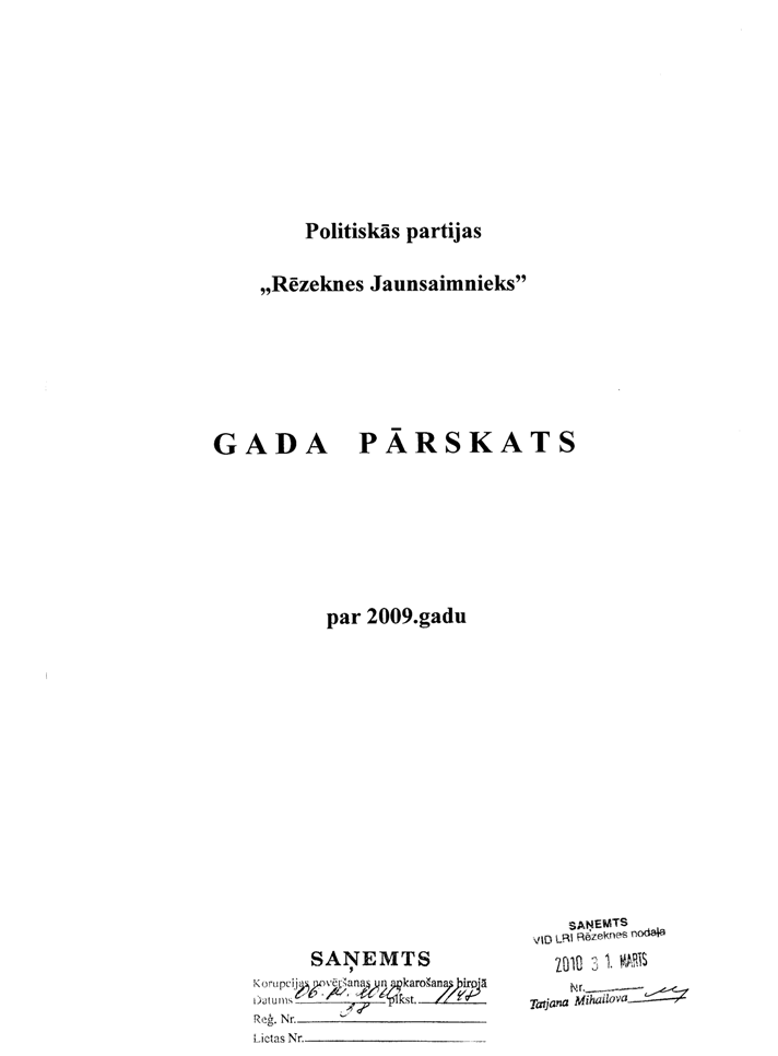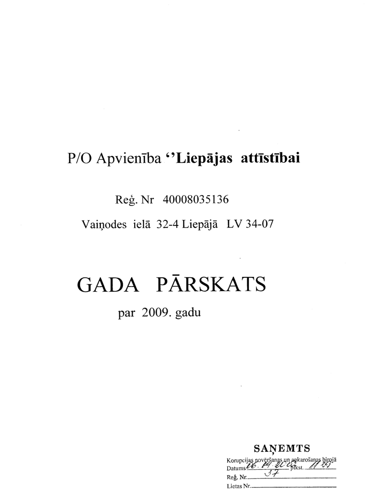 Darbības pārskati. Publicēts oficiālajā laikrakstā "Latvijas Vēstnesis", 14.04.2010., Nr. 59 https://www.vestnesis.lv/ta/id/208060