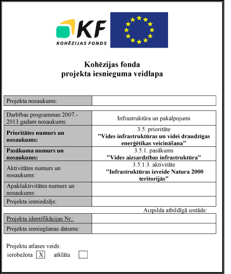 Kohēzijas fonda projektu iesniegumu vērtēšanas veidlapa