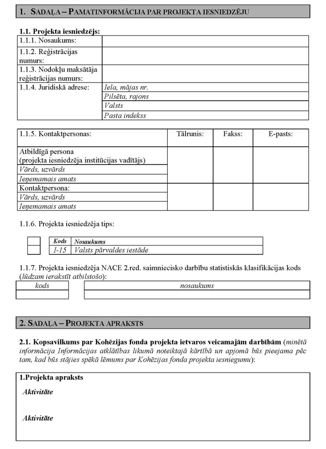 | 35. | Projekta iesnieguma veidlapā aizpildītas visas tās sadaļas |