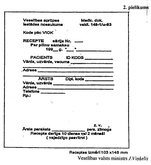 2. Noteikt, ka receptes zāļu saņemšanai par pilnu samaksu izrakstāmas uz šī rīkojuma 2. un 3.pielikumā noteiktām recepšu veidlapām.