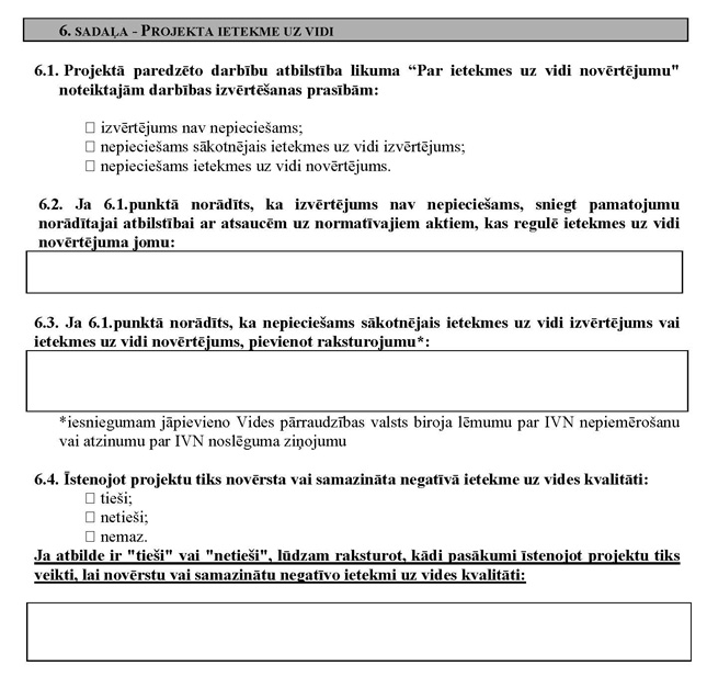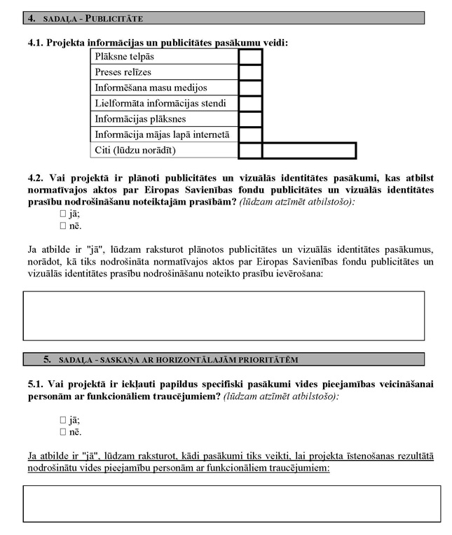 | Izstrādājot būvprojektu, tiks ņemtas vērā būvniecību reglamentējošajos normatīvajos aktos noteiktās prasības, bet projektā nav paredzēti specifiski pasākumi vides pieejamības veicināšanai personām ar funkcionāliem traucējumiem | 0 | ||