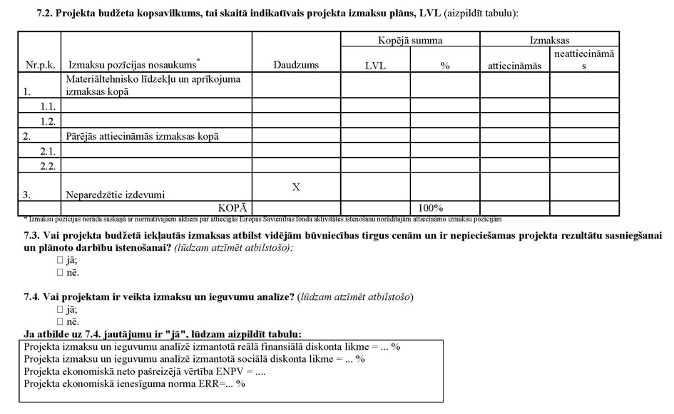 15.2. ir mazākas par 35 140 200 latu, projekta iesniedzējs projekta iesniegumu sagatavo latviešu valodā atbilstoši projekta iesnieguma veidlapai (2.pielikums)."