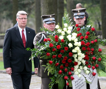 ceremonijā Brāļu kapos Rīgā (attēlā pa kreisi),