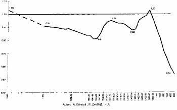 Paaudžu nomaiņa Latvijā 1940.–1996.g. (iedzīvotāju atražošanās neto koeficients)