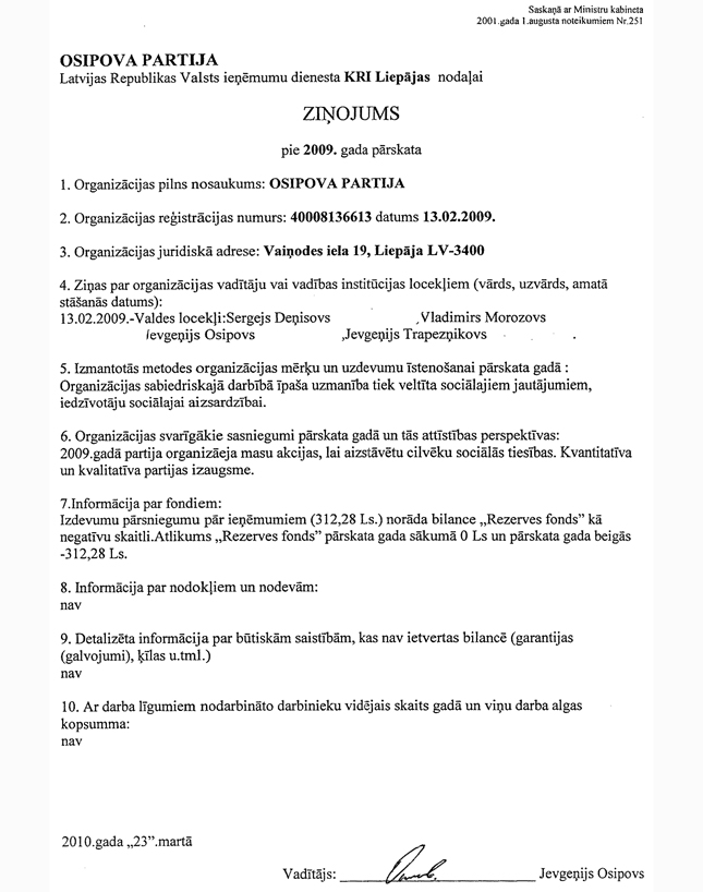 Darbības pārskati. Publicēts oficiālajā laikrakstā "Latvijas Vēstnesis", 12.05.2010., Nr. 74 https://www.vestnesis.lv/ta/id/209683