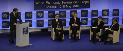 No 9. līdz 11.maijam Ministru prezidents Valdis Dombrovskis Beļģijas galvaspilsētā Briselē kopā ar 400 citiem valdības, biznesa, akadēmiskās un pilsoniskās sabiedrības līderiem piedalījās Pasaules ekonomikas forumā par Eiropu, kurā tika diskutēts par ekonomiku stiprināšanu, ilgtspējas nodrošināšanu, kā arī reģionālajām un globālajām ģeopolitikas un drošības aktualitātēm. Pirmdien, 10.maijā, Ministru prezidents piedalījās foruma atklāšanā un foruma slēgtajā sesijā par jauno finanšu struktūru un eiro. Šajā sesijā diskusijās piedalījās arī Eiropas Komisijas konkurences komisārs Hoakins Almunja, Starptautiskā Valūtas fonda Eiropas departamenta direktors Mareks Belka, Grieķijas finanšu ministrs Georgs Papakonstantinu un citas augsta līmeņa amatpersonas. Pēcpusdienā Ministru prezidents Valdis Dombrovskis televīzijā kopā ar Eiropas ekonomikas un monetāro lietu komisāru Olli Rēnu, Grieķijas finanšu ministru Georgu Papakonstantinu piedalījās debatēs par eiro nākotni. Savukārt otrdien, 11.maijā, Valdis Dombrovskis piedalījās noslēguma plenārsesijā par “Eiropas 2020” stratēģijas īstenošanu. Valdības vadītājs Latvijā atgriezās 11.maija vakarā.