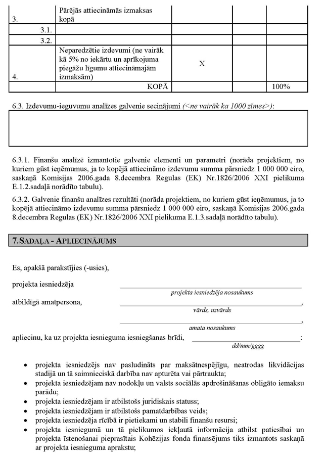 | 7. | Projekta īstenošana (ietekme uz horizontālo prioritāti – ilgtspējīga attīstība) |