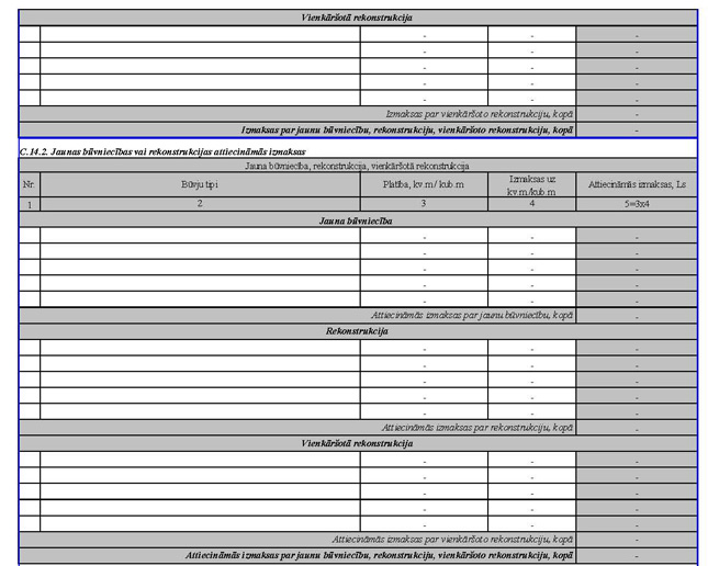 Jaunbūvei un rekonstrukcijai par kopējo būves platību (bez PVN)