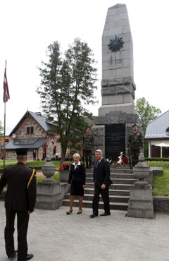 14.jūnijā Valsts prezidents Valdis Zatlers un Gulbenes novada domes priekšsēdētāja Sandra Daudziņa nolika ziedus pie Brīvības pieminekļa Gulbenē Foto: Toms Kalniņš, VPK |