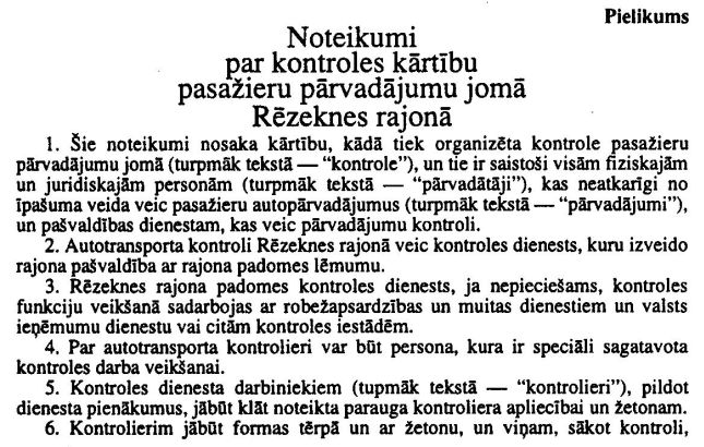 kontroles kārtību autopārvadājumu jomā" Rēzeknes rajona padome