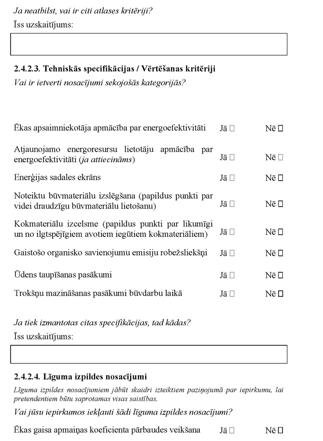 | 2.5. | Nav definētas "zaļā publiskā iepirkuma" prasības |