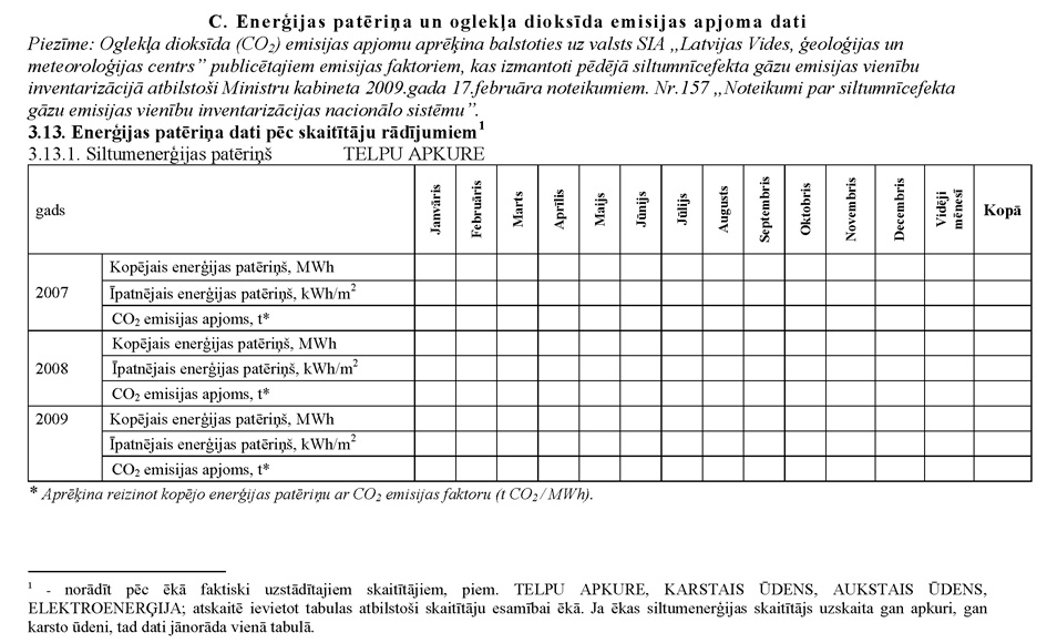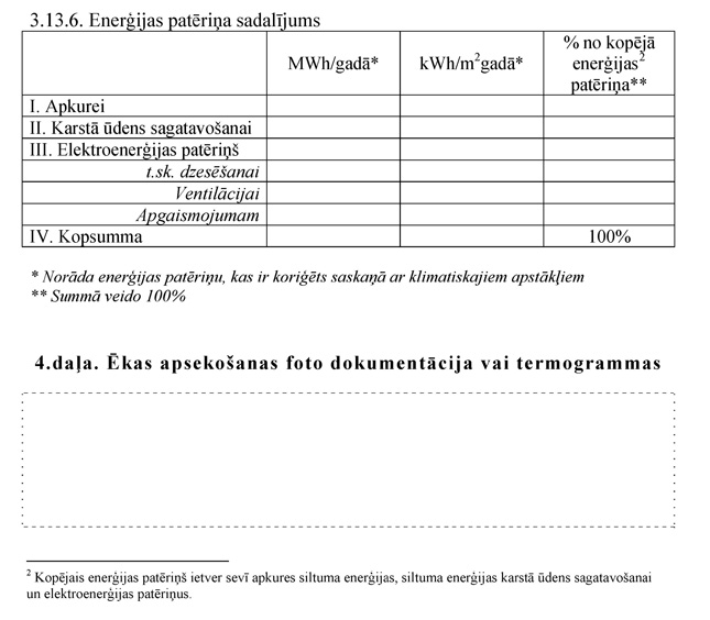| 3.2. | Siltumenerģijas patēriņš apkurei 20–30 kWh/m2 gadā (neieskaitot) |