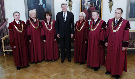 Apsveicot jauno Satversmes tiesas tiesnesi pēc amata ķēdes saņemšanas, Valdis Zatlers Satversmes tiesas tiesnešiem sacīja: