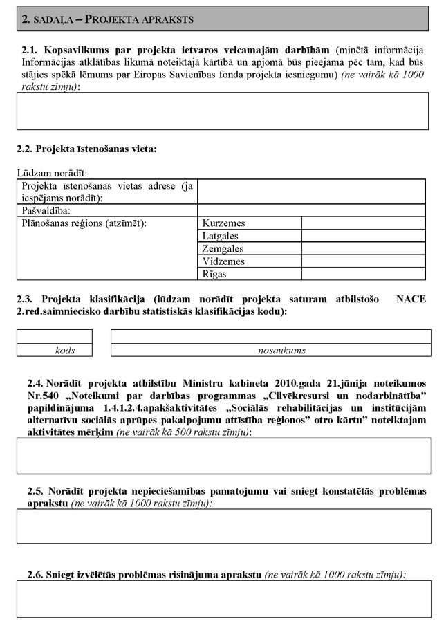 | 1.5. | Projekta iesniegums ir sagatavots datorrakstā |