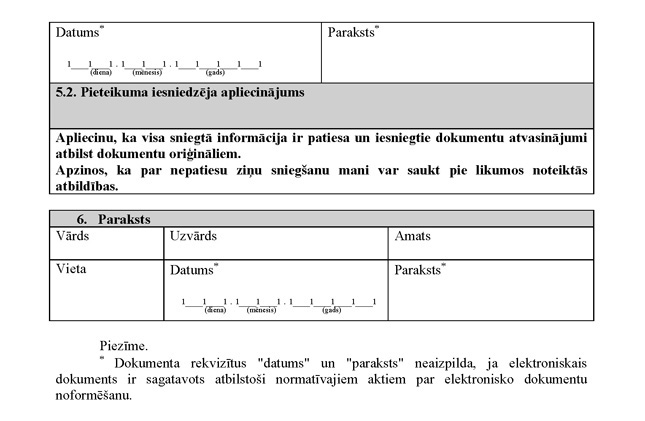 5. Ja persona atbilst šo noteikumu 3.3.apakšpunktā noteiktajām prasībām, pieteikumā tā apliecina, ka: