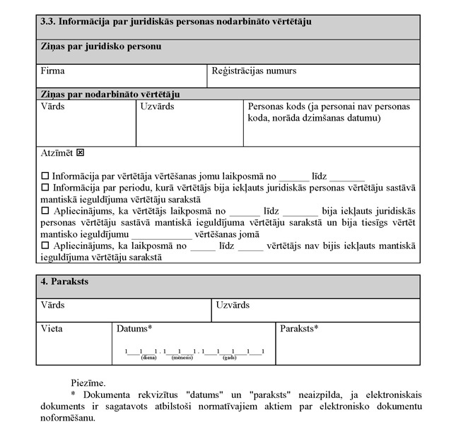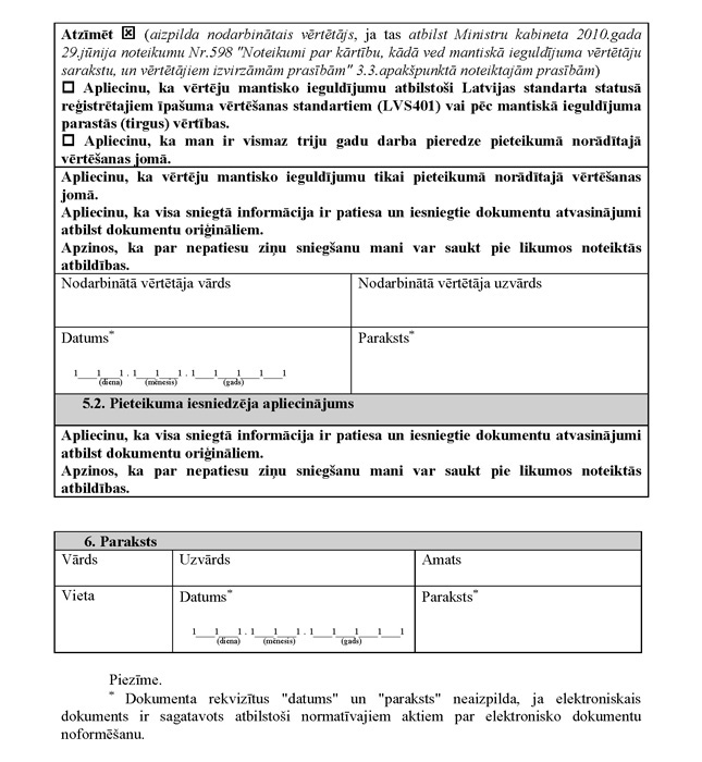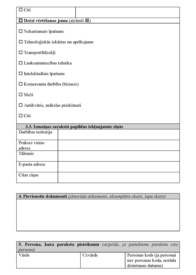 Pieteikums juridiskas personas iekļaušanai mantiskā ieguldījuma vērtētāju sarakstā