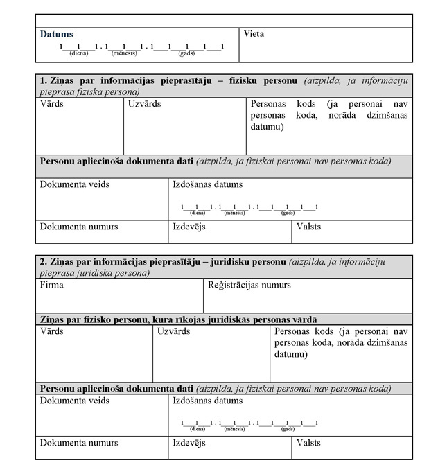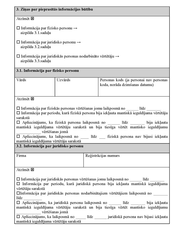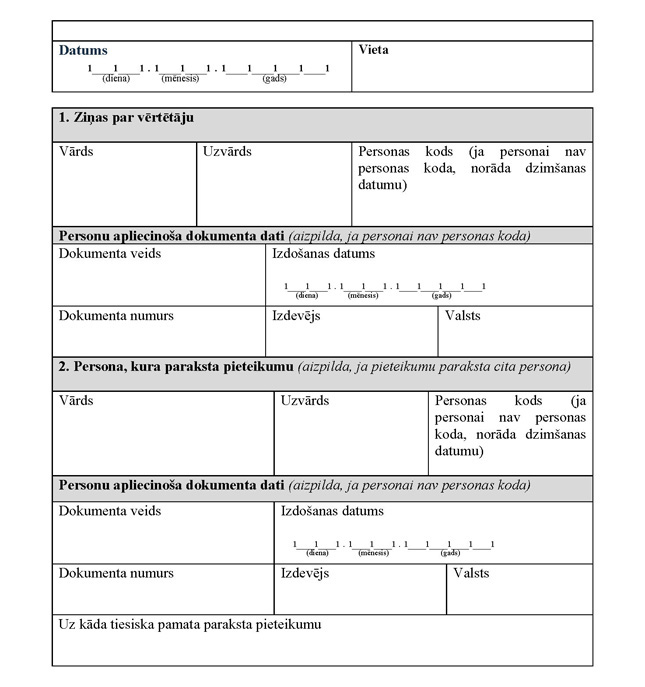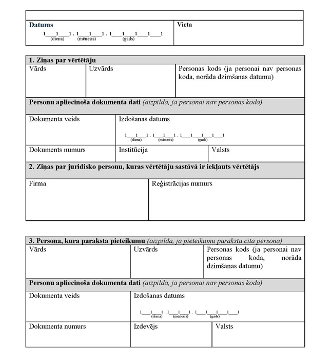 Pieteikums informācijas saņemšanai par mantiskā ieguldījuma vērtētāju sarakstā iekļautajām vēsturiskajām ziņām par vērtētājiem