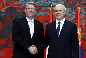 Savukārt tikšanās laikā ar Serbijas premjerministru Mirko Cvetkoviču lielākā uzmanība tika veltīta abu valstu ekonomiskās un finanšu krīzes pārvarēšanas pieredzei. Serbijas valdības vadītājs īpaši interesējās par Latvijas ekonomikas atveseļošanas pasākumiem. Viņš tāpat izrādīja interesi par meža un telekomunikāciju nozares attīstību Latvijā. Valsts prezidents no savas puses informēja par Latvijas ostu piedāvātajām iespējām.