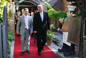 Latvijas Valsts prezidents Valdis Zatlers Maķedonijas prezidenta un Majas Ivanovas kundzes rīkotajās oficiālajās pusdienās 15.jūlijā:
