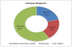 Kopš 2008.gada lauksaimniecības, pārtikas un zivsaimniecības produktu1 (turpmāk – lauksaimniecības produktu) eksports vērtības ziņā ir nozīmīgākais Latvijas eksporta sektors. 2009.gadā, kad lauksaimniecības produktu un arī kopējais Latvijas eksports būtiski samazinājās, lauksaimniecība saglabāja nozīmīgākās Latvijas eksporta nozares pozīciju (LVL 727 milj. jeb 19% no kopējā Latvijas eksporta).