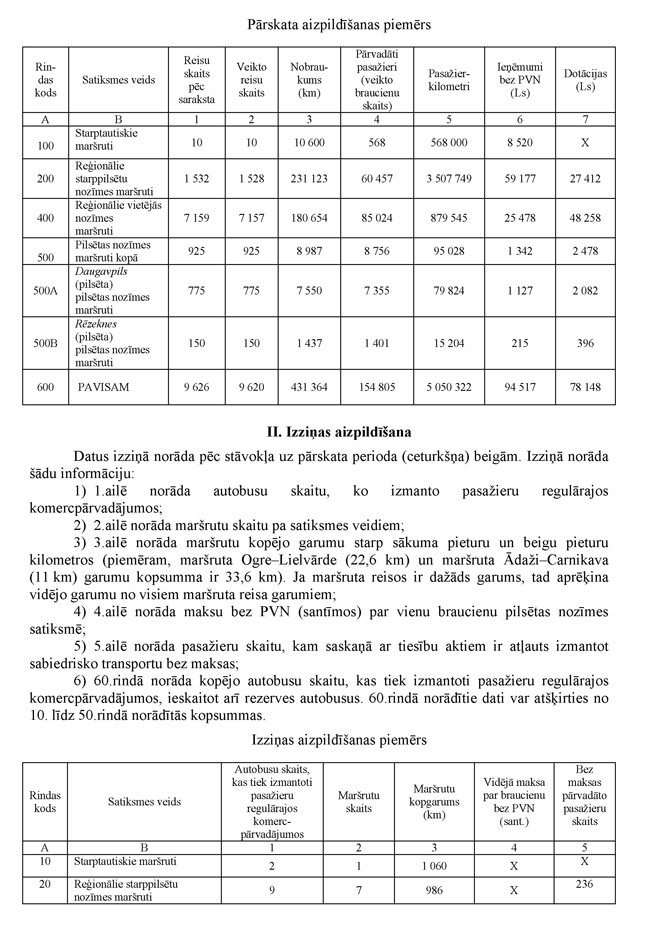 2. Pārskatu atbilstoši norādījumiem par katru kalendāra gada ceturksni aizpilda Latvijas Republikā reģistrēti pārvadātāji, kas veic pasažieru regulāros komercpārvadājumus ar autobusiem.
