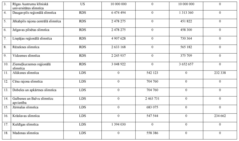 5.4. pirmās un otrās projektu iesniegumu atlases kārtas finansējuma atlikumu un šo noteikumu 12.2.apakšpunktā minētās apvienības attiecināmo izmaksu summas atlikumu sadala trešās projektu iesniegumu atlases kārtas ietvaros proporcionāli vidējam stacionāro gultu skaitam 2009.gadā starp šo noteikumu 1.pielikumā minētajiem projektu iesniedzējiem, kuru statuss šo noteikumu 1.pielikumā norādīts kā reģionālā daudzprofilu slimnīca."
