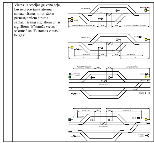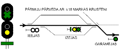 17.1. vienceļa iecirkņa staciju galveno ceļu ieejas pārmijām – virzienā uz dažādiem ceļiem no katra stacijas gala;