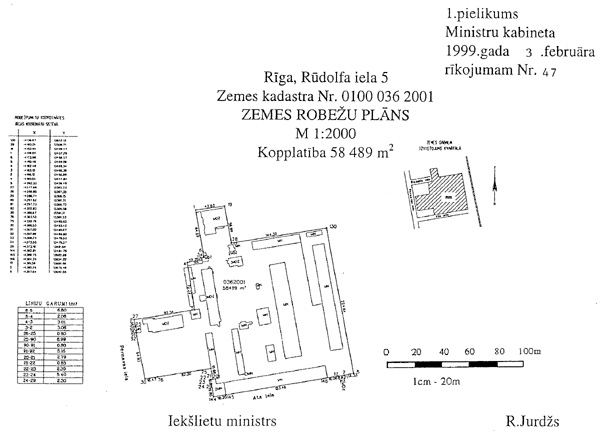 1.1. zemesgabalu 58489 m2 platībā (zemes kadastra Nr. 0100 036 2001, zemesgabala robežas norādītas 1.pielikumā) Rīgā, Rūdolfa ielā 5;