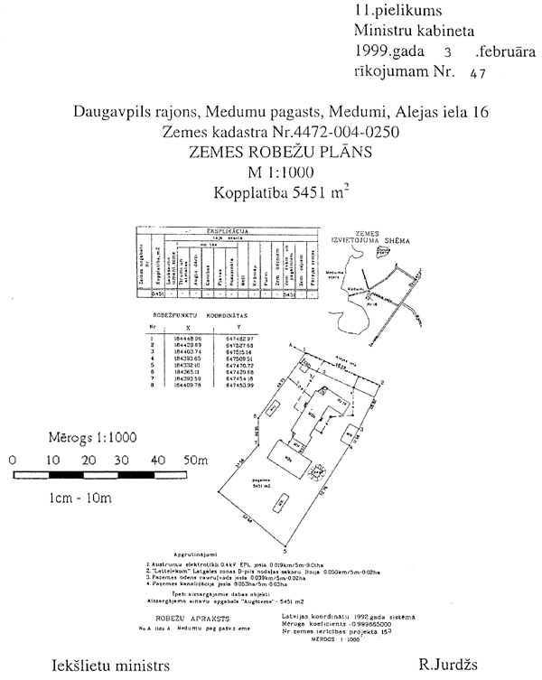 1.11. zemesgabalu 5451 m2 platībā (zemes kadastra Nr. 4472 004 0250, zemesgabala robežas norādītas 11.pielikumā) Daugavpils rajona Medumu pagasta Medumos, Alejas ielā 16;