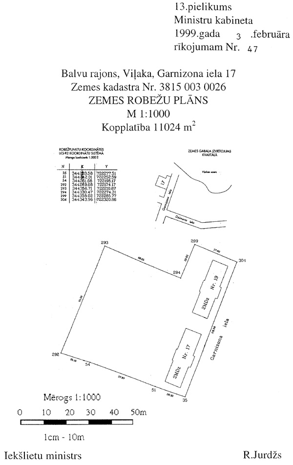 1.13. zemesgabalu 11024 m2 platībā (zemes kadastra Nr. 3815 003 0026, zemesgabala robežas norādītas 13.pielikumā) Balvu rajona Viļakā, Garnizona ielā 17;